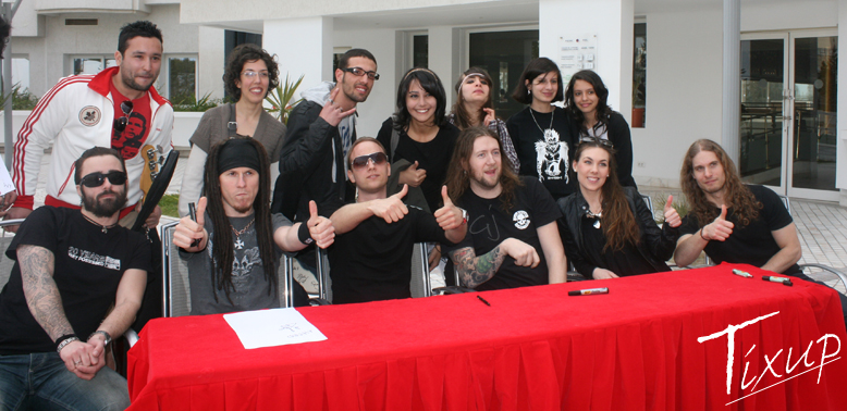 Les fans étaient au rendez-vous cet après-midi à l’hôtel Vime d’el Menzah VII pour se faire dédicacer des guitares, des t-shirts et le classique papier qui trouvera refuge directement dans un cadre-photo. En tout, les membres des deux groupes se sont montrés sympathiques avec leurs fans et ouverts pour les photos et les discussions, un esprit que nous aimerions voir de plus en plus chez nos artistes locaux. Bref, l’ambiance était bonne depuis l’arrivée des deux groupes et le sera surement le samedi lors du concert tant attendu.