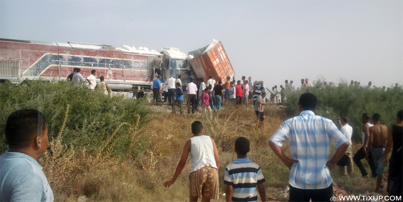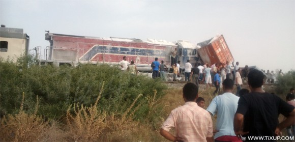 Vers 16h30, un train partant de Tunis vers Sousse a percuté un semi-remorque qui était coincé entre les rails aux alentours de Cheguarnia (à quelques kilomètres d’Ennfidha). N’ayant aucune mort (heureusement), le chauffeur du train ainsi que le convoyeurs ont quand même été blessés.