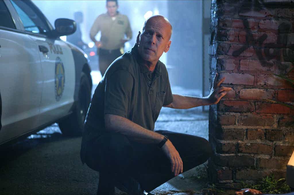 Dix ans se sont écoulés depuis la disparition de Brigit Baker. Son ancien petit ami est libéré de prison et se lie immédiatement avec les frères et sœurs de la jeune femme. Ils se rendent au domicile du pharmacien local avec lequel Brigit a été vue pour la dernière fois afin de découvrir ce qui lui est arrivé. Le sort de Brigit n’est pas aussi mystérieux que la raison pour laquelle le pharmacien a des gardes armés à sa maison et une porte lourdement fortifiée qui protège ce qui se trouve dans le sous-sol. Les choses se gâtent à partir de là. Anna Hindman, dans le rôle de la sœur aigrie de Brigit, s’en sort bien. Les cigarettes, se moque-t-elle, « ne seront pas ce qui me tuera ». Et Bruce ? C’est le shérif, un « déshonneur épuisé et usé de cette ville », le laquais d’un puissant homme d’affaires qui mène la barque et veut que Bruce « neutralise » cette situation de plus en plus suspecte. Ce n’est pas le meilleur look pour Bruce. Son temps d’écran abrégé le limite à rester debout à l’extérieur de la maison. À un moment donné, quelqu’un encourage Bruce à « au moins faire semblant d’en avoir quelque chose à foutre ». Il aurait probablement dû écouter.