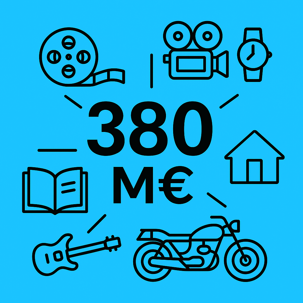 - 12–20 M€ : collections personnelles (motos, œuvres d’art, souvenirs de tournage)